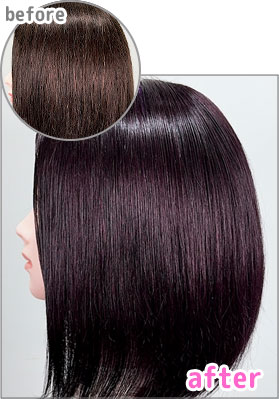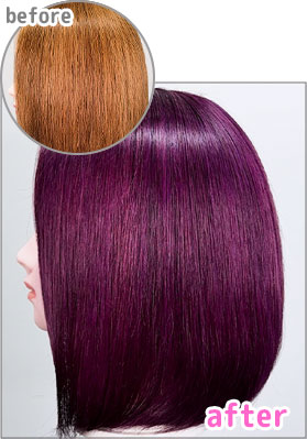表面の中間から毛先に、10倍の『クリアクリーム』を混ぜて薄めた“明るいパープル”を使用しています!