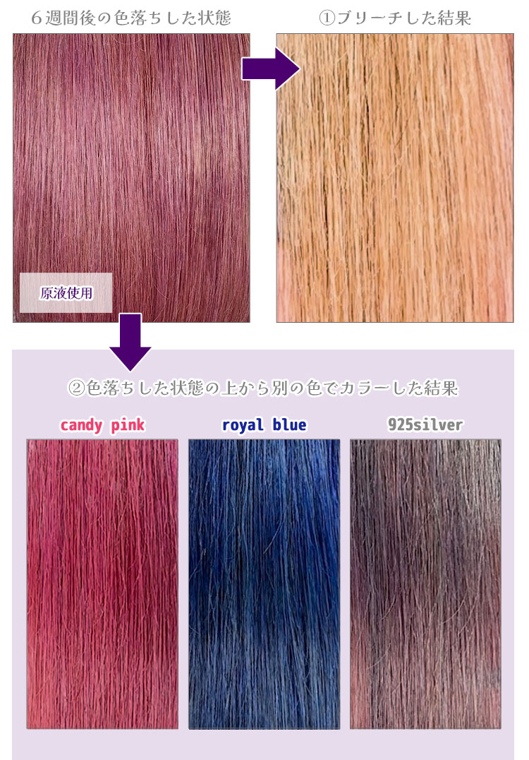 『ショッキングパープル』を原液で使用した場合の色持ちは、約6週間が目安になります!