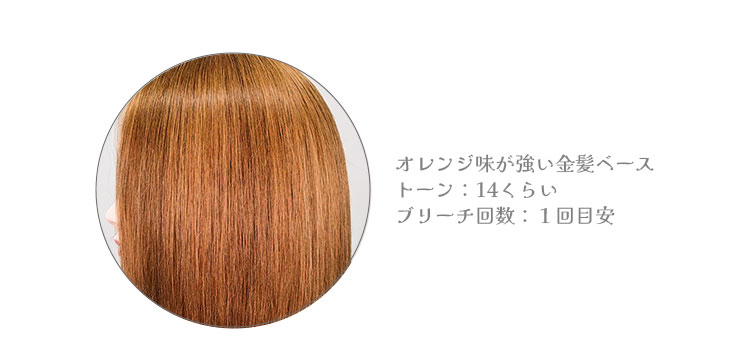 オレンジ味が強い金髪ベースに原液で使用した6週間後の状態から