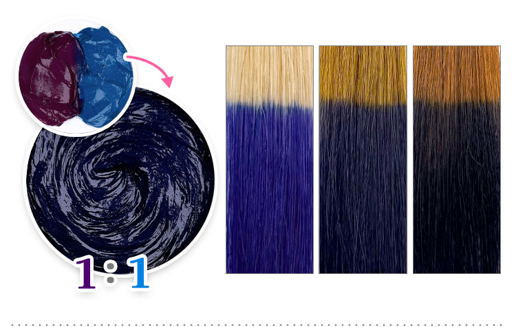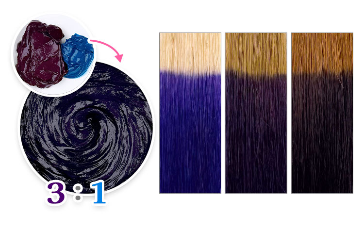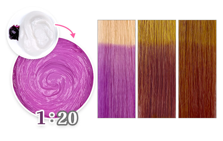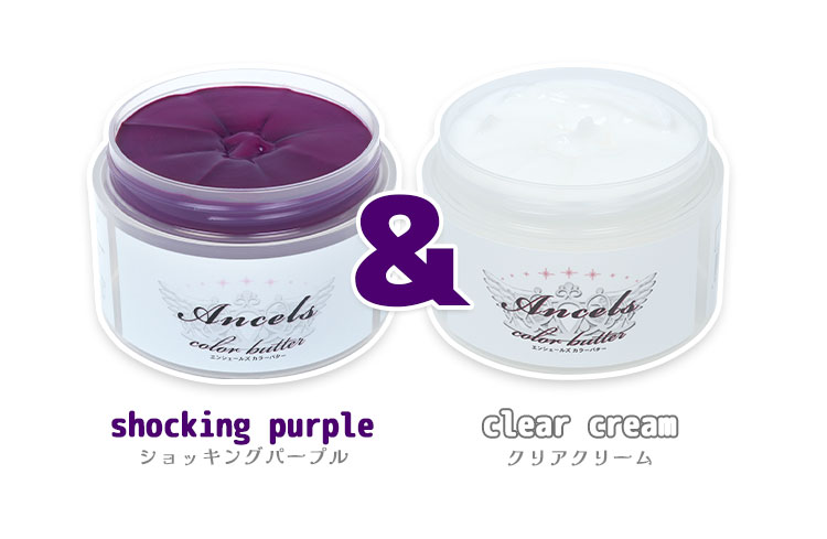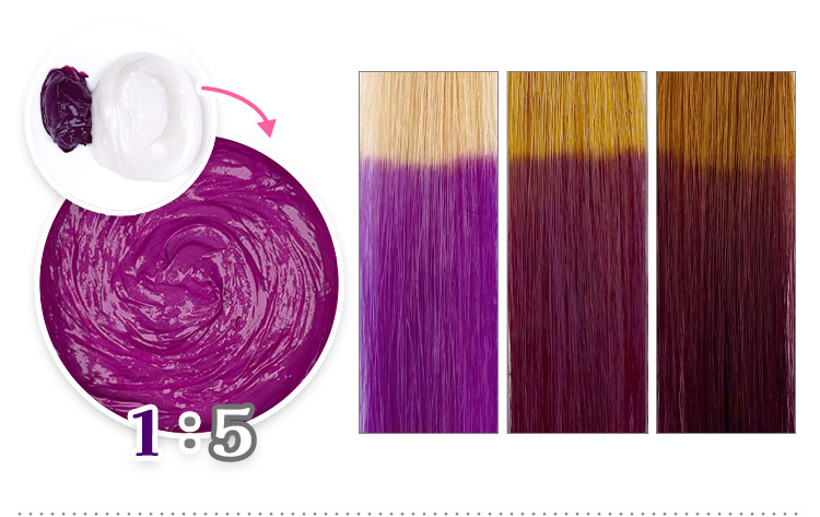 薄める専用の『クリアクリーム』(市販のトリートメントで代用可能)を混ぜると、色が薄まり明るいパープルをつくることができます◎